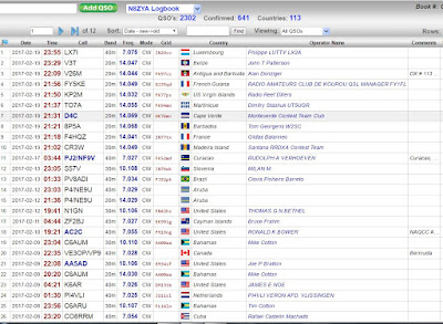 A45XR in Oman at 7,429 miles. He was using a double element "delta loop" for an antenna. I worked him on both 17 and 30 meters in 2013; and was my most distant contact until now.